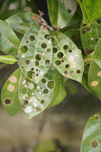 | きれいな丸い穴の開いた葉っぱ |