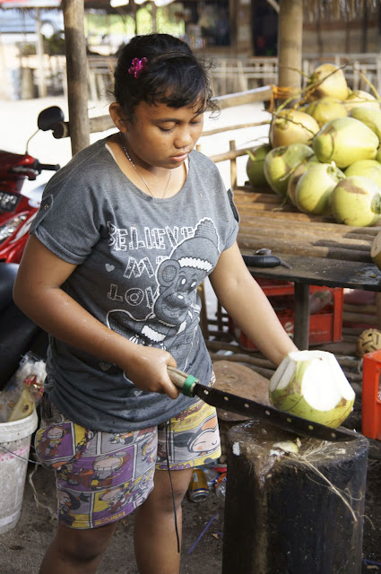 少女がナタのような包丁で慣れた手つきで(でもけだるそーに)皮をむき切ってくれた。
